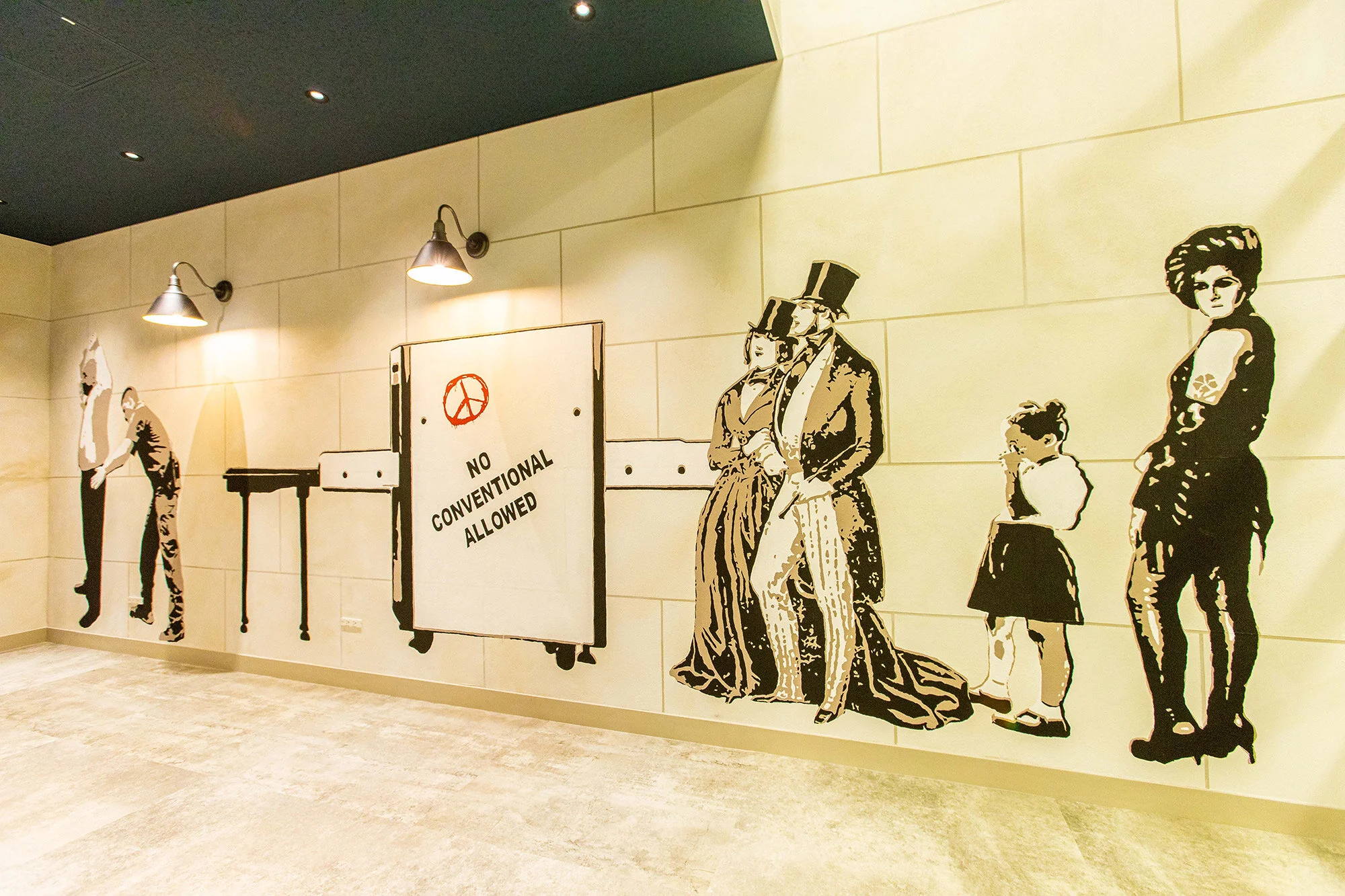 公益財団法人ひょうご産業活性化センターが開設しNPO法人コミュニティリンクがランニングするコワーキングスペースがSMBC神戸にオープンしました。アートワークは、香港ベースのビジュアル・アーティストであるJoe Joe Ngaiが、スペースのサインなどは神戸を拠点に活躍する山内庸介が手掛けました。このスペースはSMBCが保有する歴史ある建物でしたが、リノベーションを行う事で、若い企業家や個人事業主の方が使える様にと設立されました。二人のクリエイターは、今回のオファーを受け、この場所やコンセプトに合う様々なアートワークやサインを考案し施しました。