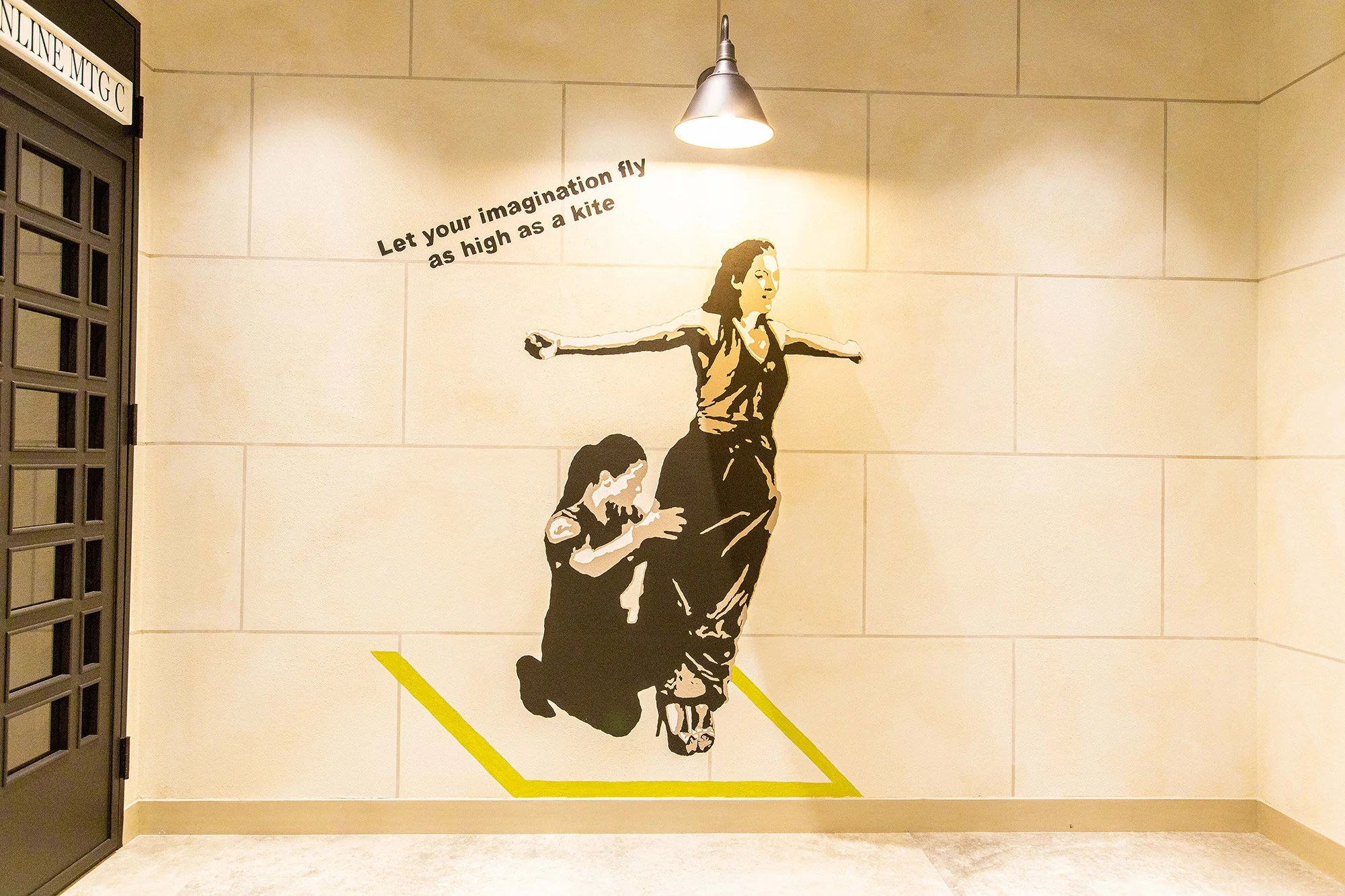 Hong Kong based Visual Artist Joe Joe Ngai worked on the art work and Kobe based illustrator Yosuke Yamauchi worked on several signage for brand new CO-WORKING SPACE run by SMBC and Kigyo Plaza Hyogo. The space is open for entrepreneur and young indivisuals who just established their businesses. The Builsing is a very historical place in Kobe History. Both Joe Joe and Yosuke took on these idea and created a special work for the site.