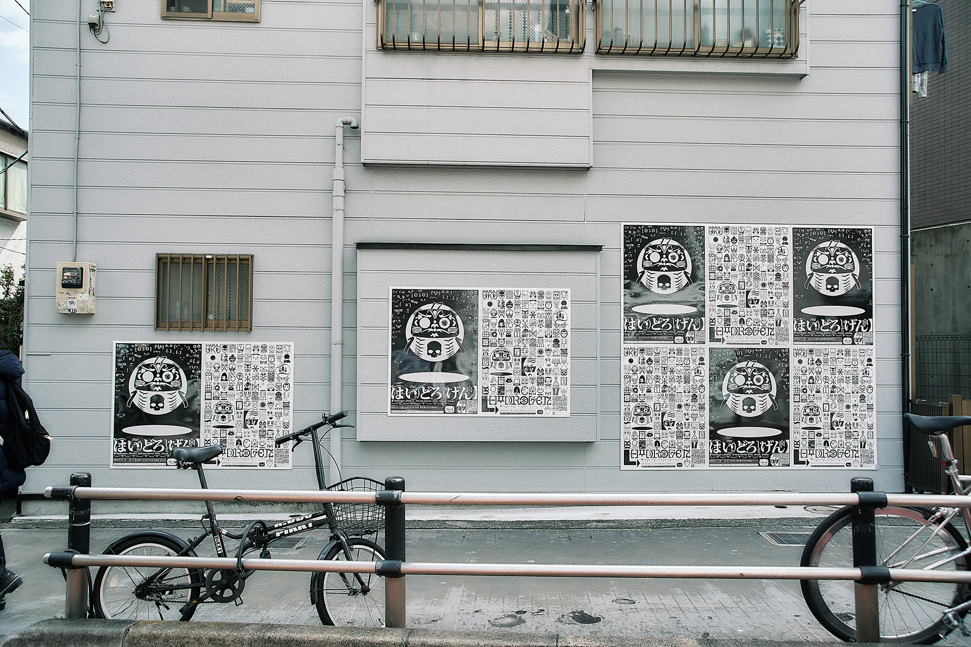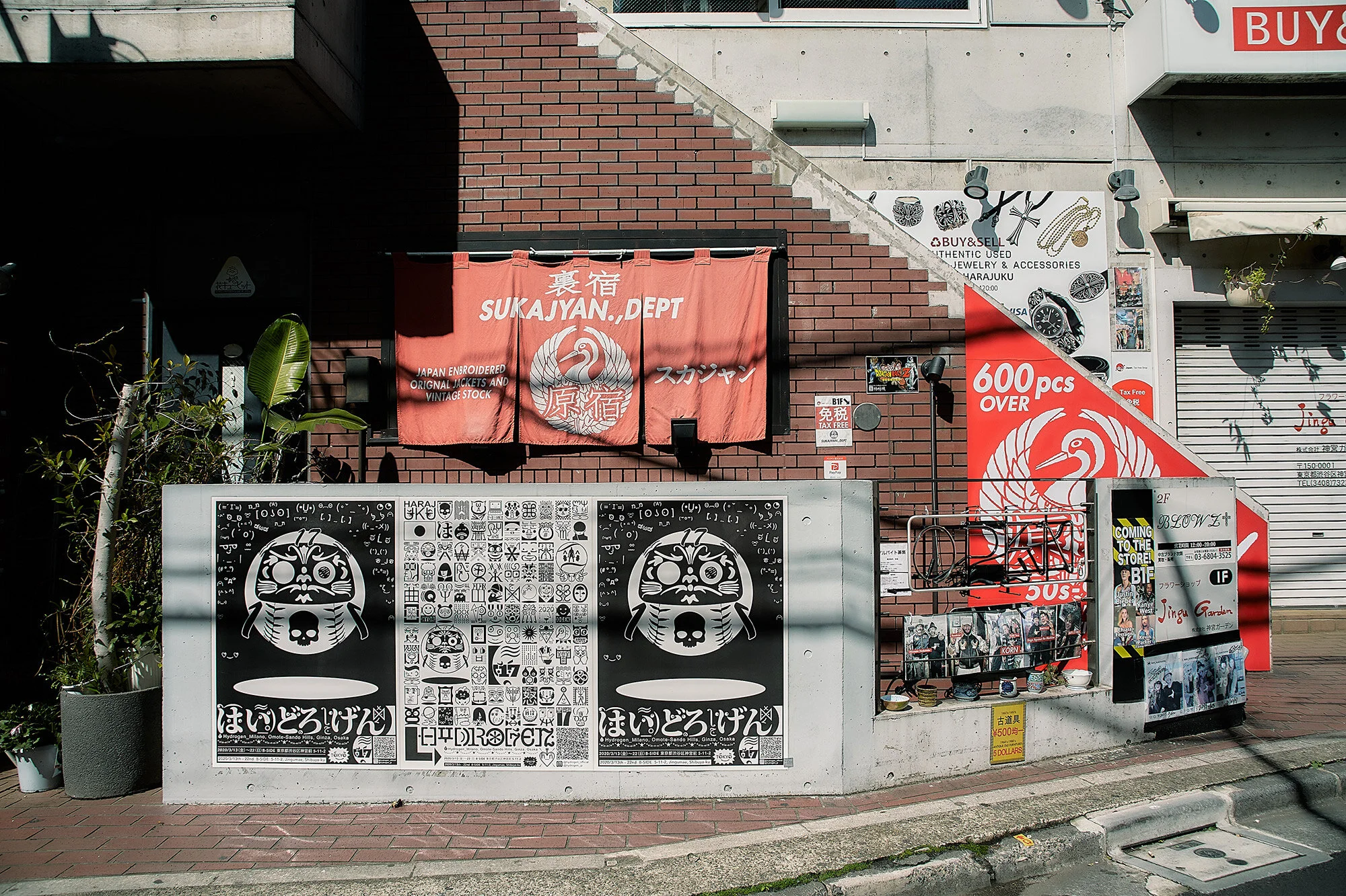 French grafitti artist HONET created special Tokyo themse pictogram graphics for HYDOGEN's 17th anniversary. We made limited edition T-shirts and jacke streets of Harajuku with his posters.