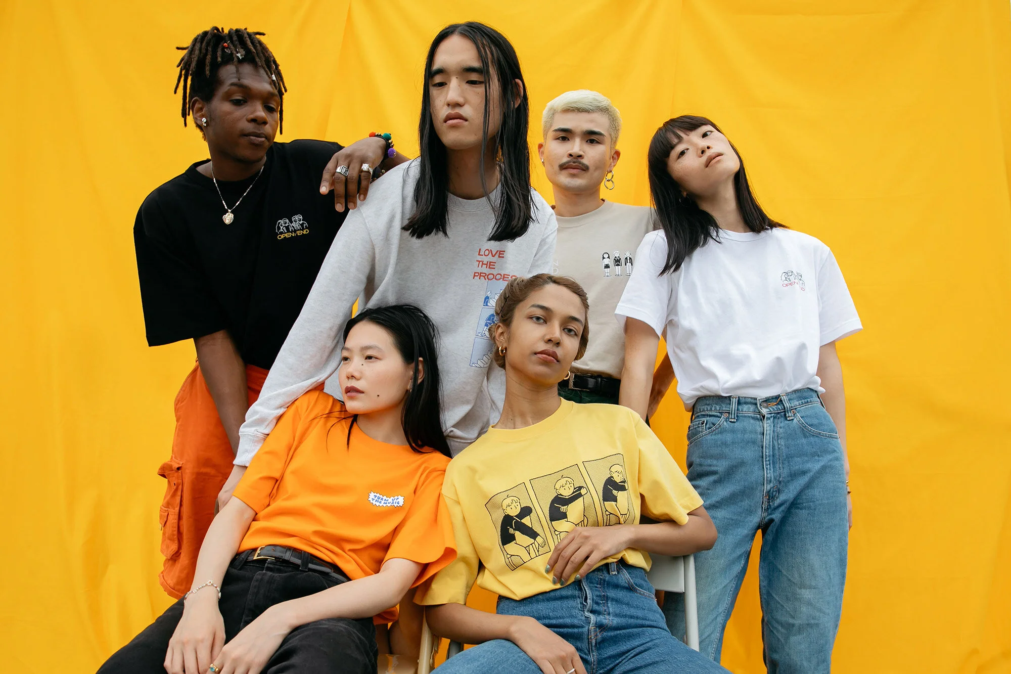 さらに、OPEN/ENDは若いアーティストとコラボレーションをしていくプラットフォームでもあり、様々な人と際限のないクリエイティブな実験をしていくブランドでもあります。アーティストとグラフィックやもの作りを通して個々の声を届けるために、最初のコレクションはジェンダー 平等(gender equality)として、タイのアーティストSundae Kide(サンデーキッズ)とコラボレーションしました。ブランド立ち上げは完全にリモートで行われ、生産・販売 在庫のロスを軽減する仕組みや配送時の梱包材に至る まで配慮した設計にしています。