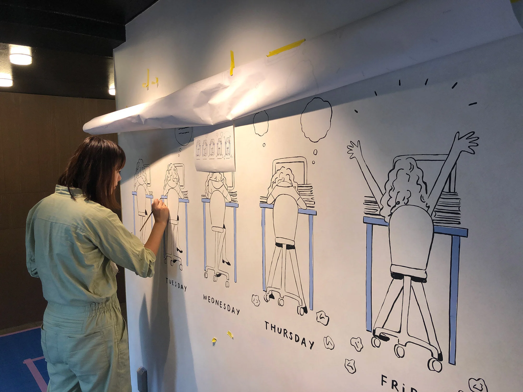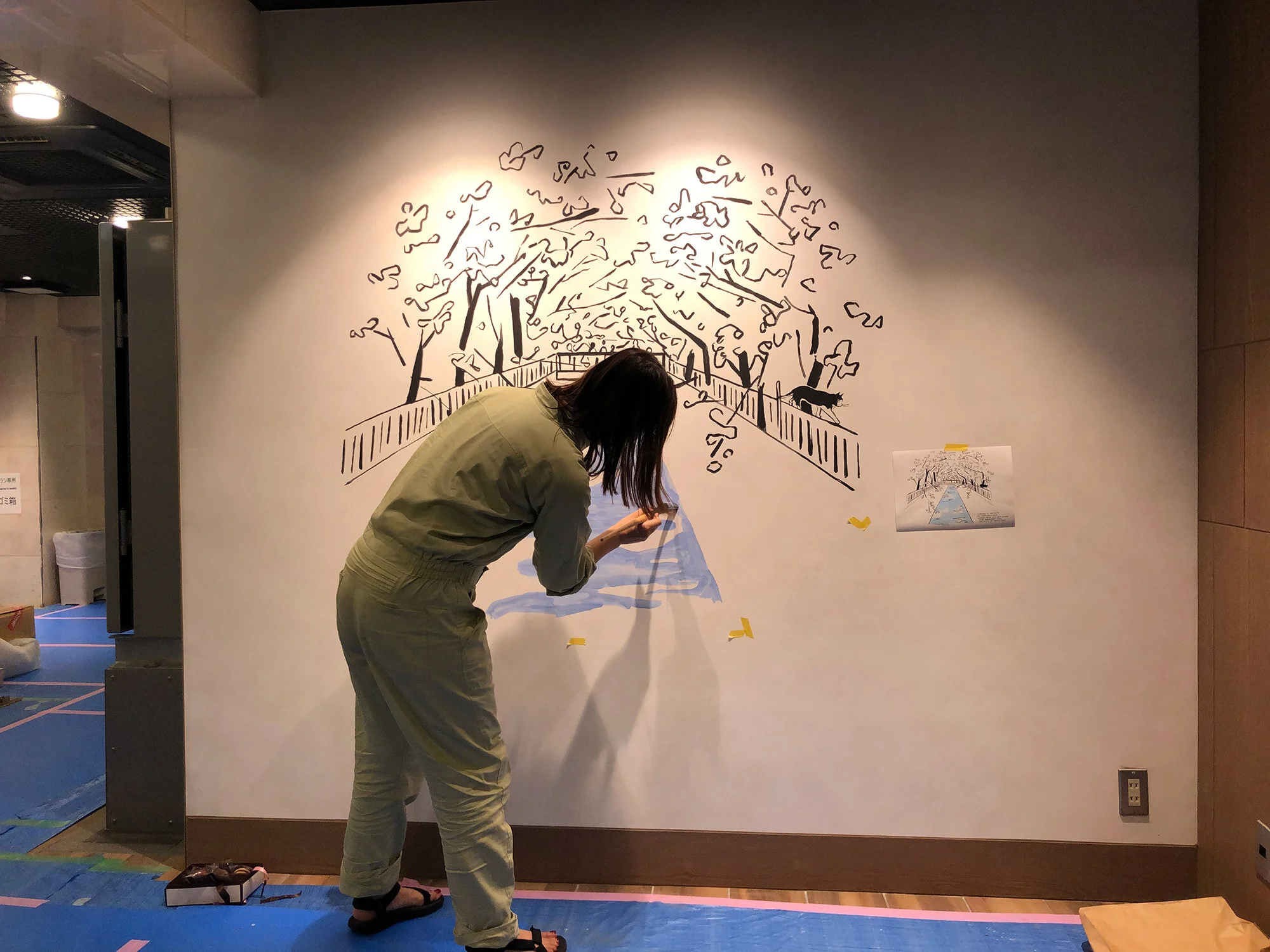 東京の中目黒の物件に数種類のアートワークを提供し、実際にその場で絵を描かせていただきました。